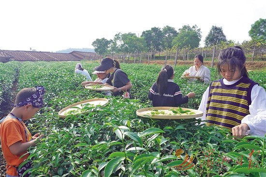 莆田网讯 11月8日,一场热闹的茶研学活动在涵江区萩芦镇梅洋茶场开展。孩子们围在台湾制茶师傅身旁,认真聆听茶叶采摘、杀青、揉捻的技巧讲解,在亲身体验中感受闽台交融的茶文化魅力。这片郁郁葱葱的400余亩高山茶园,不仅承载着传统茶文化的传承,更见证着闽台农业融合发展的生动实践。