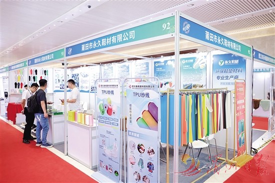 图为鞋博会展出创新材料。本组图片来源莆田市鞋业协会