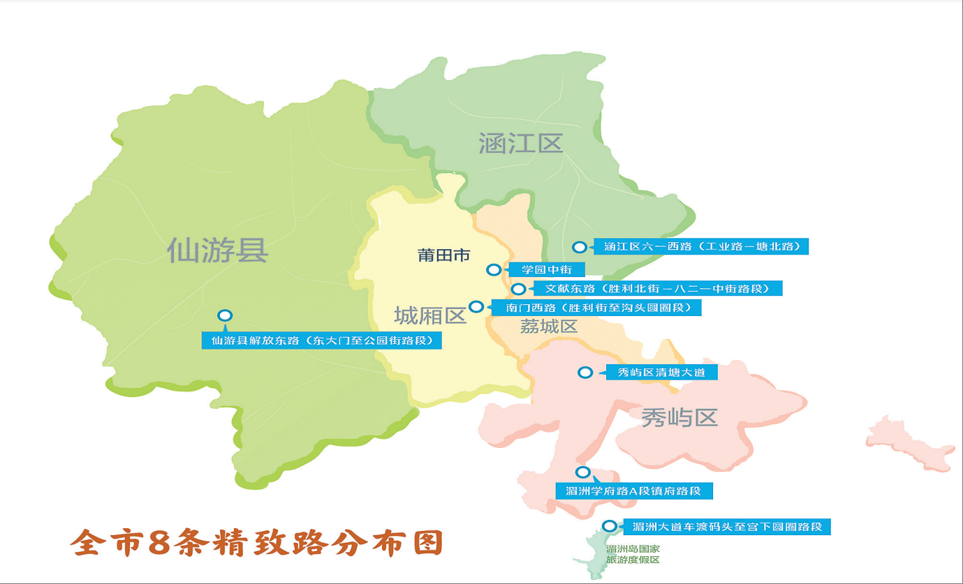 昨日,记者从市城市管理局了解到,8条精致路分布在全市各县区,采取“一街一策、精益求精”“整洁有序、舒适友好”方案实施建设,重点提升道路功能、完善服务设施、合理布局街道设施、改善人行空间、顺畅交通、绿化景观,彰显莆田文化特色。