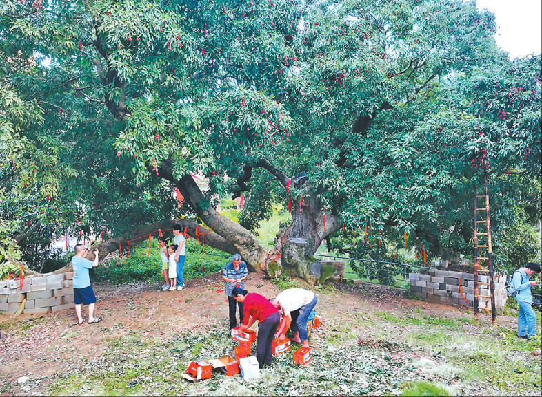 据悉,下横山村荔枝种植历史悠久,有荔枝林20多公顷。其中,古树名木276棵,树龄500年以上的荔枝树有30棵。该村挖掘荔枝文化,举办采摘推介活动,推动农文旅融合发展,助力乡村振兴。(全媒体记者 郭珊珊/文 陈斌/图)